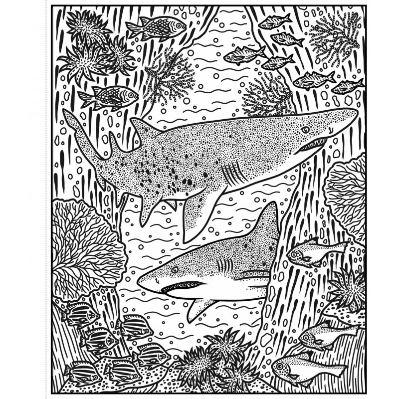Packed with action scenes of different types of sharks hunting, leaping and cruising among coral reefs, kelp forests and open oceans. Spot baby sharks emerging from their eggs, and a small and sneaky epaulette shark creeping up a beach! Use the brush provided to sweep water over the designs and vibrant paints magically appear. A mess-free way to keep children busy, perfect for travel. Simply tuck the waterproof back flap under each page as it's painted, to stop water from seeping through to the rest of the book.